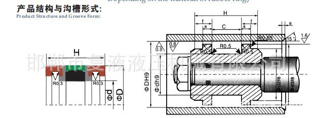 兩個(gè)導(dǎo)向環(huán)、兩個(gè)擋圈和一個(gè)密封環(huán)由聚四氟乙烯復(fù)合材料制成,彈性體由丁腈膠制成。